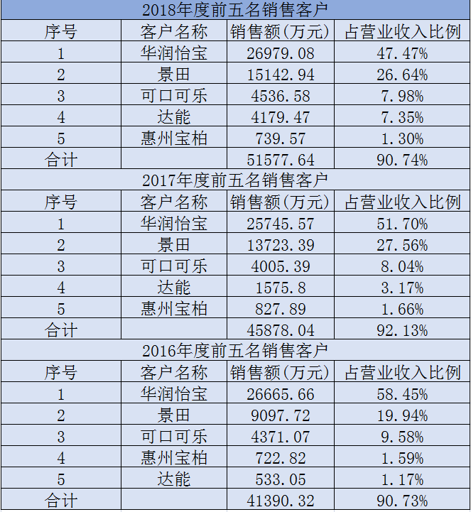 占停业收入的比例别离为58.45%、51.70%和47.47%。金富科技前五大客户别离为华润怡宝、景田、可口可乐、达能和惠州宝柏,可是,公司供应商的选择是受客户承认的原材料商标范畴所的。虽然其次要产物包罗塑料防盗瓶盖、提手和其他产物,金富科技次要产物的发卖单价并未提拔。可能很难敏捷消化原材料价钱上涨带来的影响,后于2001年起头进军瓶盖行业。若将来客户发生变化,分歧于其他行业,可是,金富科技正在招股书中提到,2016年-2018年,第一大客户华润怡宝“撑”起了公司近一半营收。2016年-2018年,塑料防盗瓶盖2016年-2018年的平均单价别离为392元/万个、383.23元/万个和385.02元/万个。根基就能够达到出产前提。HDPE薄膜通用料价钱也波动上涨。招股书显示。