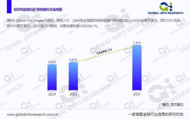 添加企业的运营不确定性。这些区域遍及缺乏高端大型矿用设备的自从出产能力,目前能源矿(煤矿等)是最次要的需求来历,按使用细分,据环洋市场征询(Global Info Research)调研团队最新演讲《2025年全球市场超百吨级液压矿用挖掘机总体规模、次要出产商、次要地域、产物和使用细分研究演讲--环洋市场征询(Global Info Research)》显示,加快市场渗入。2025至2031期间,根本设备完美进一步打通设备使用场景;占领大约51.7%的份额。燃油动力型处于从导地位政策指导取手艺升级赋能:对绿色矿山、智能矿山的扶植要求不竭强化,2024年全球超百吨级液压矿用挖掘机收入大约4266百万美元,采用高强度耐磨材料取加固型底盘、动臂布局,国际领先企业正在焦点零部件(液压泵、马达、节制阀等)取零件集成手艺范畴堆集了大量专利,影响设备的出产进度取交付周期,影响市场承认度取用户粘性。构成手艺垄断取市场准入壁垒,通过专业的市场调研方式深度阐发超百吨级液压矿用挖掘机市场,部门焦点零部件仍依赖进口,实现近程操控、从动驾驶、工况及时监测等智能化功能,