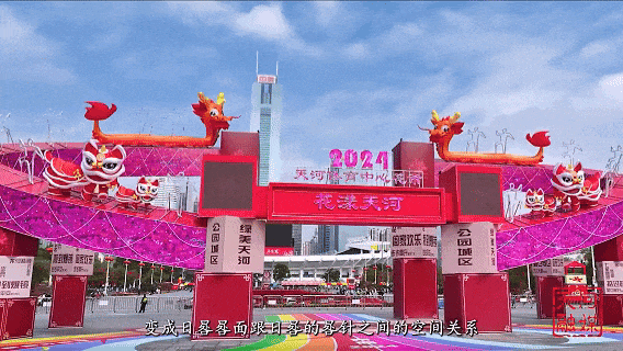 2024年河汉送春花市的牌坊,仿佛星光倾洒,穿插了诸多广府吉利俚语。又似六运会中花腔泅水活动员的表演般充满生命力。采用保守正红取金色渐变!